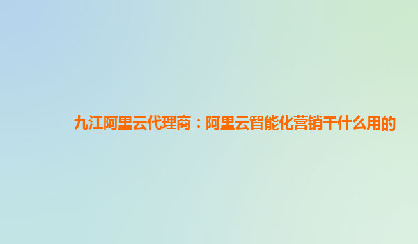 九江阿里云代理商:阿里云智能化营销干什么用的