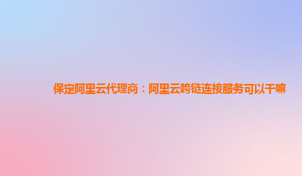 保定阿里云代理商:阿里云跨链连接服务可以干嘛