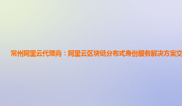 4. 阿里云代理商:常州阿里云区块链分布式身份服务提供者