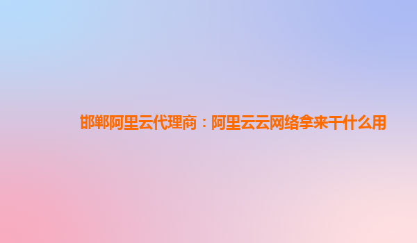 邯郸阿里云代理商:阿里云云网络拿来干什么用
