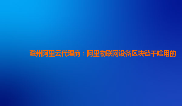 滁州阿里云代理商:阿里物联网设备区块链干啥用的