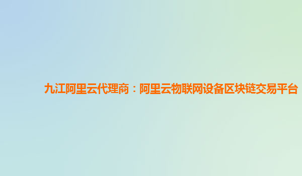 阿里云物联网设备区块链交易平台:九江阿里云代理商的助力