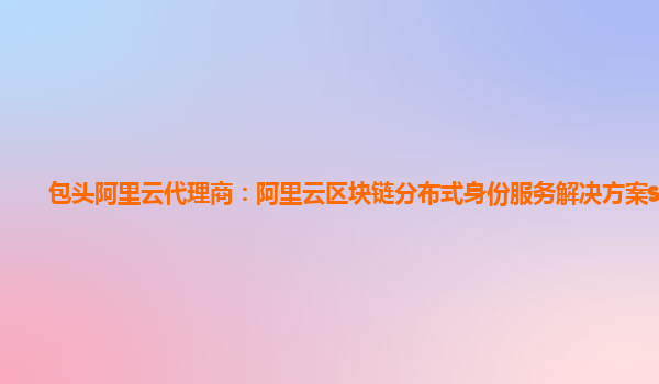 包头阿里云代理商:阿里云区块链分布式身份服务解决方案sdk