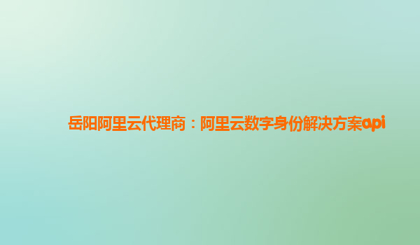 岳阳阿里云代理商:阿里云数字身份解决方案api