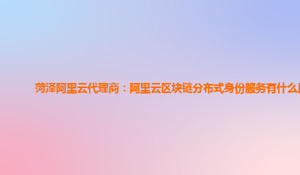 菏泽阿里云代理商:阿里云区块链分布式身份服务有什么用