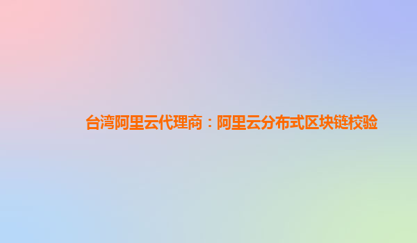 台湾阿里云代理商:阿里云分布式区块链校验