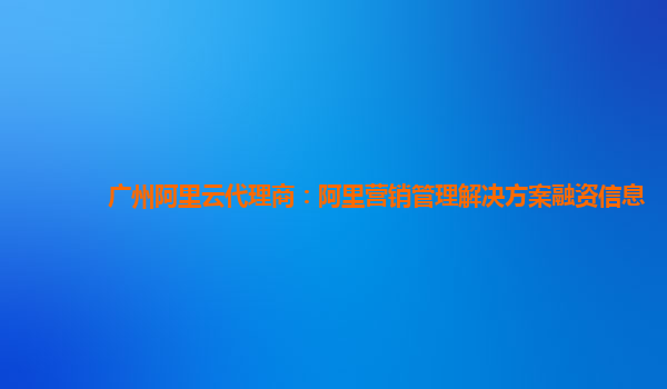 广州阿里云代理商:阿里营销管理解决方案融资信息