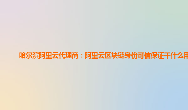 哈尔滨阿里云代理商:阿里云区块链身份可信保证的用途