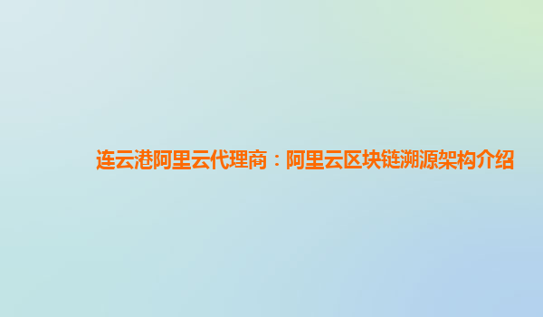 导读连云港阿里云代理商:阿里云区块链溯源架构介绍