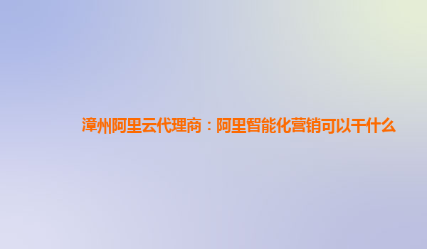 漳州阿里云代理商:阿里智能化营销可以干什么