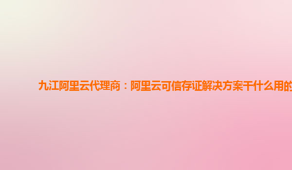 九江阿里云代理商:阿里云可信存证解决方案干什么用的