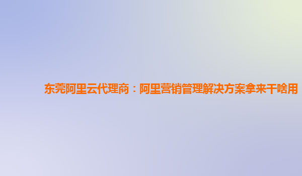 东莞阿里云代理商:阿里营销管理解决方案拿来干啥用