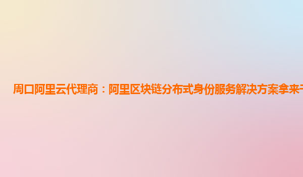 周口阿里云代理商:阿里区块链分布式身份服务解决方案拿来干什么用