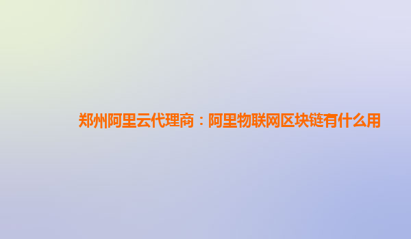郑州阿里云代理商:阿里物联网区块链有什么用