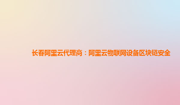 长春阿里云代理商:阿里云物联网设备区块链安全