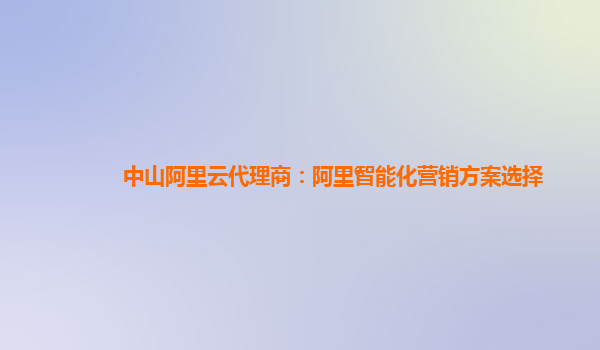 导读中山阿里云代理商:阿里智能化营销方案选择