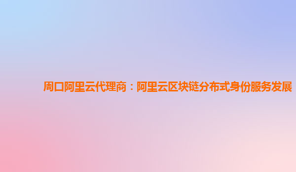 周口阿里云代理商:阿里云区块链分布式身份服务发展