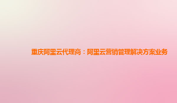 重庆阿里云代理商:阿里云营销管理解决方案业务