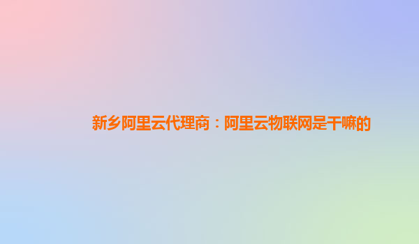 新乡阿里云代理商:阿里云物联网是干嘛的
