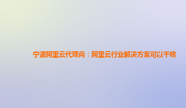 宁波阿里云代理商:阿里云行业解决方案可以干啥