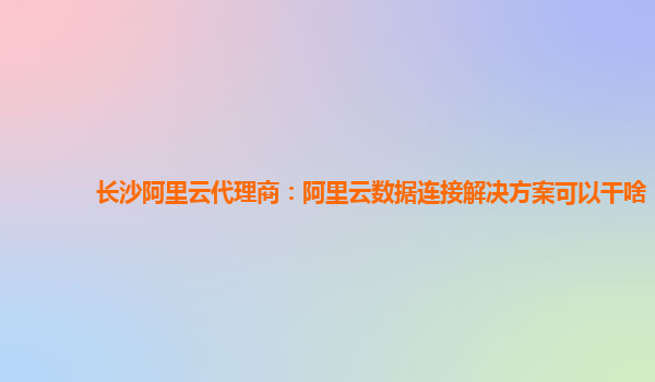 长沙阿里云代理商:阿里云数据连接解决方案可以干啥