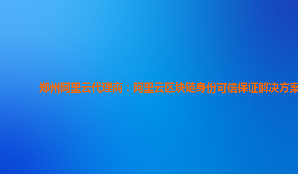郑州阿里云代理商:阿里云区块链身份可信保证解决方案
