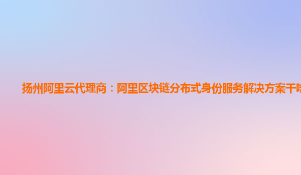 扬州阿里云代理商:阿里区块链分布式身份服务解决方案干啥用的