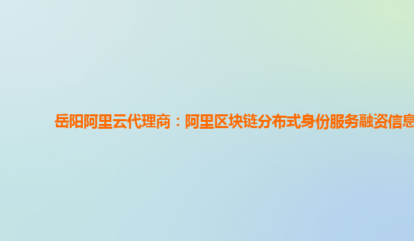 岳阳阿里云代理商:阿里区块链分布式身份服务融资信息