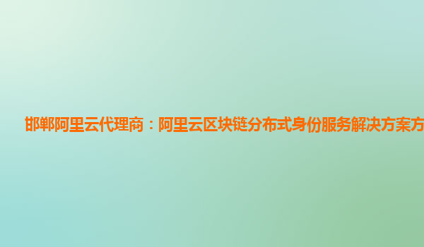 邯郸阿里云代理商:阿里云区块链分布式身份服务解决方案方案选择