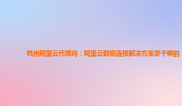 杭州阿里云代理商:阿里云数据连接解决方案是干嘛的