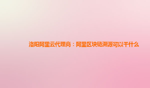 洛阳阿里云代理商:阿里区块链溯源可以干什么