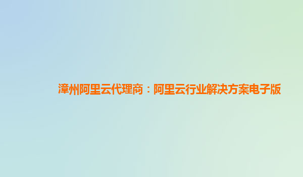 漳州阿里云代理商:阿里云行业解决方案电子版