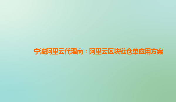 导读宁波阿里云代理商:阿里云区块链仓单应用方案