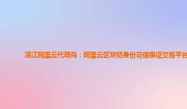 导读湛江阿里云代理商:赋能企业,打造阿里云区块链身份可信保证交易平台