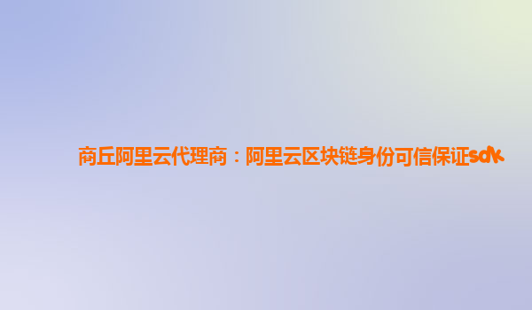 商丘阿里云代理商:阿里云区块链身份可信保证sdk