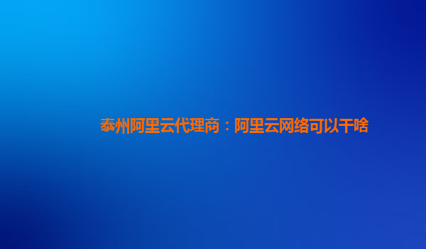 泰州阿里云代理商:阿里云网络可以干啥