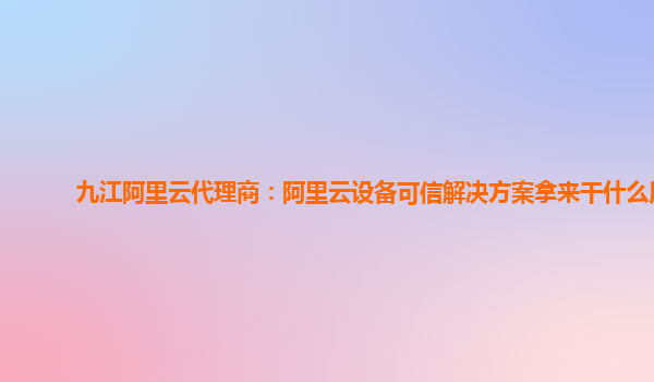 九江阿里云代理商:阿里云设备可信解决方案拿来干什么用