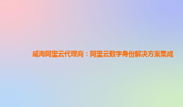 威海阿里云代理商:阿里云数字身份解决方案集成
