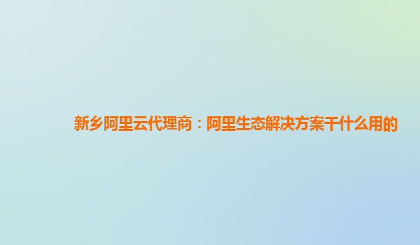 新乡阿里云代理商:阿里生态解决方案干什么用的