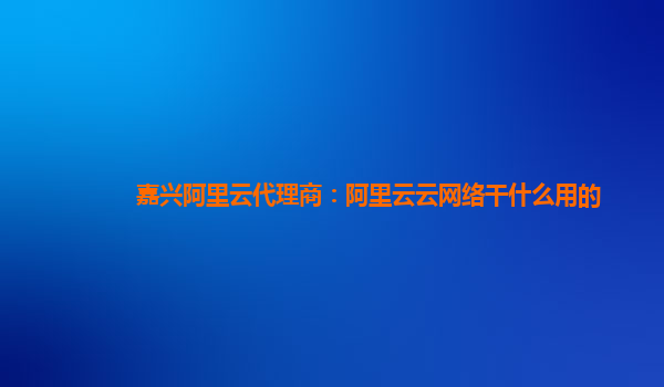 “嘉兴阿里云代理商”表明文章出自嘉兴地区的阿里云合作伙伴,具有地区针对性和专业性。而“阿里云云网络干什么用的”则直接点明了文章的主题,即介绍阿里云云网络的功能和优势。