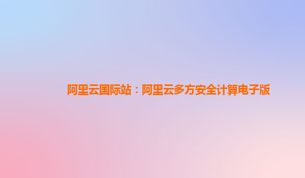 阿里云国际站:阿里云多方安全计算电子版