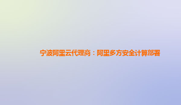 宁波阿里云代理商:阿里多方安全计算部署