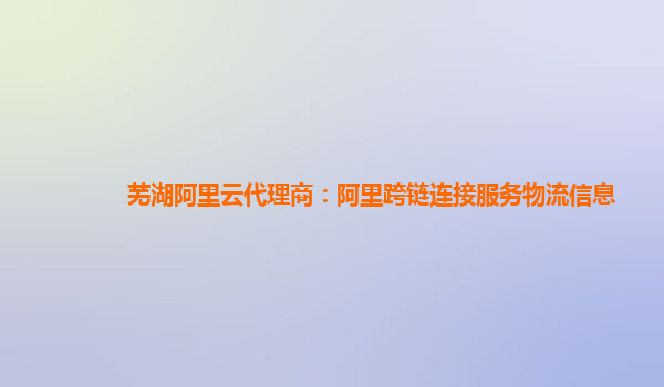 导读芜湖阿里云代理商:阿里跨链连接服务助力物流信息高效协同