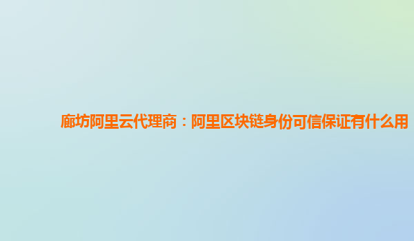 廊坊阿里云代理商:阿里区块链身份可信保证有什么用