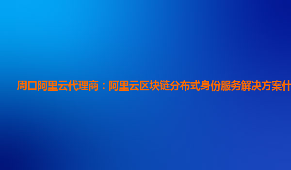 周口阿里云代理商:阿里云区块链分布式身份服务解决方案什么意思