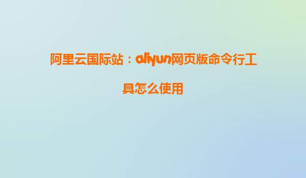 阿里云国际站:aliyun网页版命令行工具怎么使用