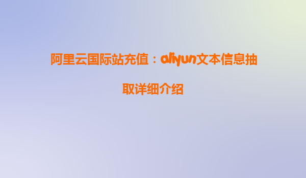 阿里云国际站充值:aliyun文本信息抽取详细介绍