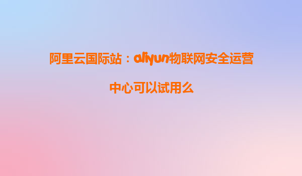广州阿里云代理商:aliyun物联网安全运营中心实现智能安全新高度
