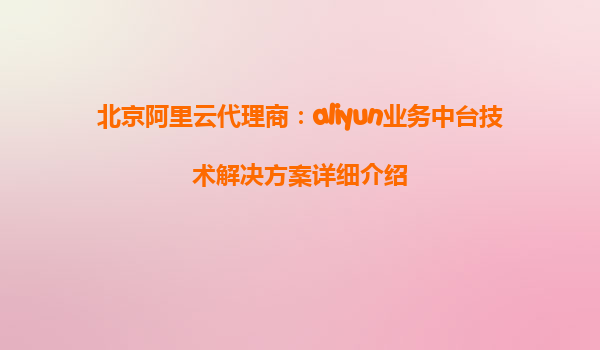 阿里云国际站代理商:aliyun业务中台技术怎么使用