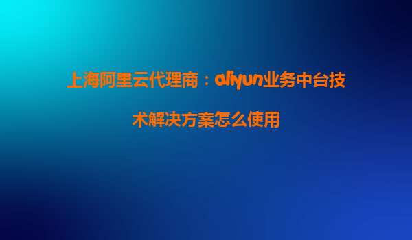 深圳阿里云代理商:aliyun业务中台技术解决方案商业化